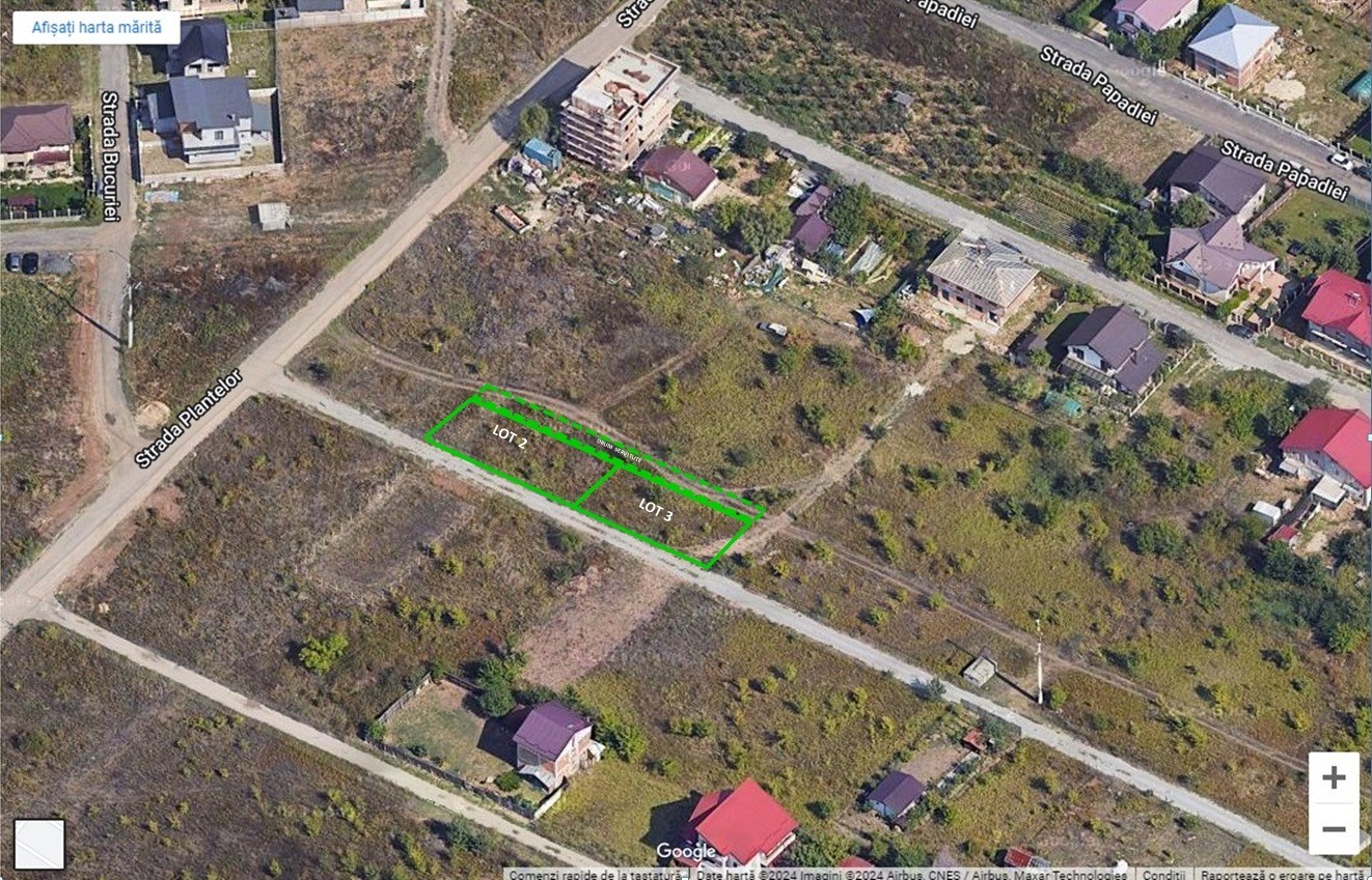 Teren de vanzare: 900 mp, cu drum de servitute (167 mp), 733 mp fara drum de servitute, deschidere 55.57 m.