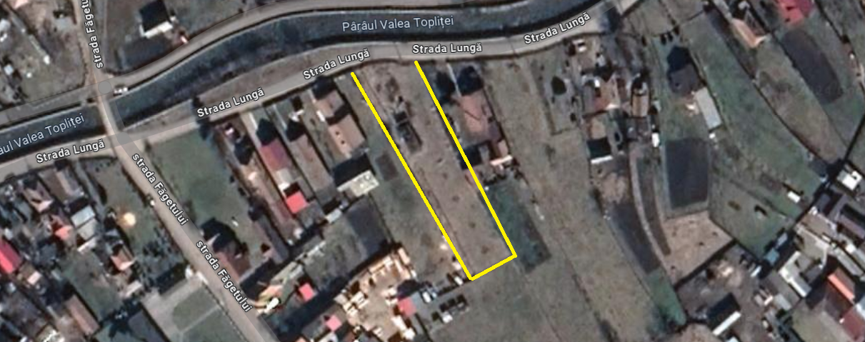 Are o suprafata suprafata de 1836 mp pe Strada Lunga 134. Toate actele la zi, intabulat 1/1. Terenul se afla langa paraul Valea Toplitei, la 5 min. de centru orasului; stalpul de curent in fata proprietatii. Pretul este de 30€ / mp. Relatii la tel: 00393401777355