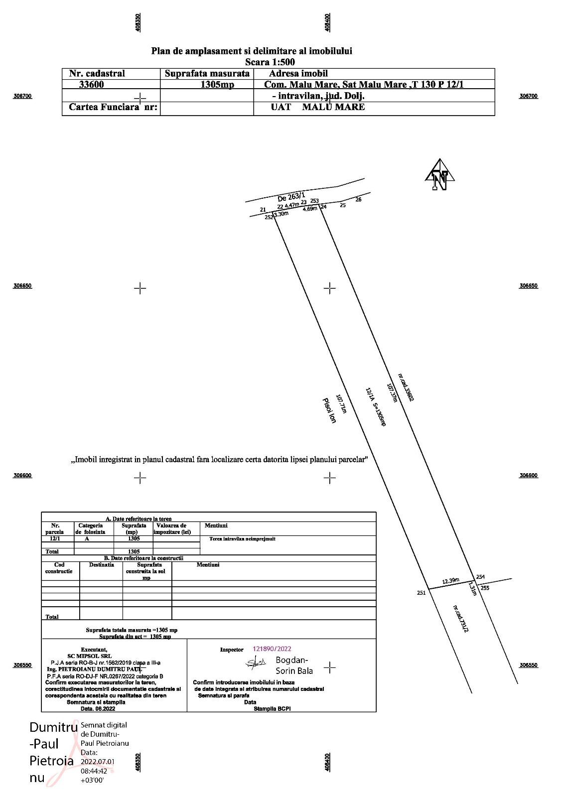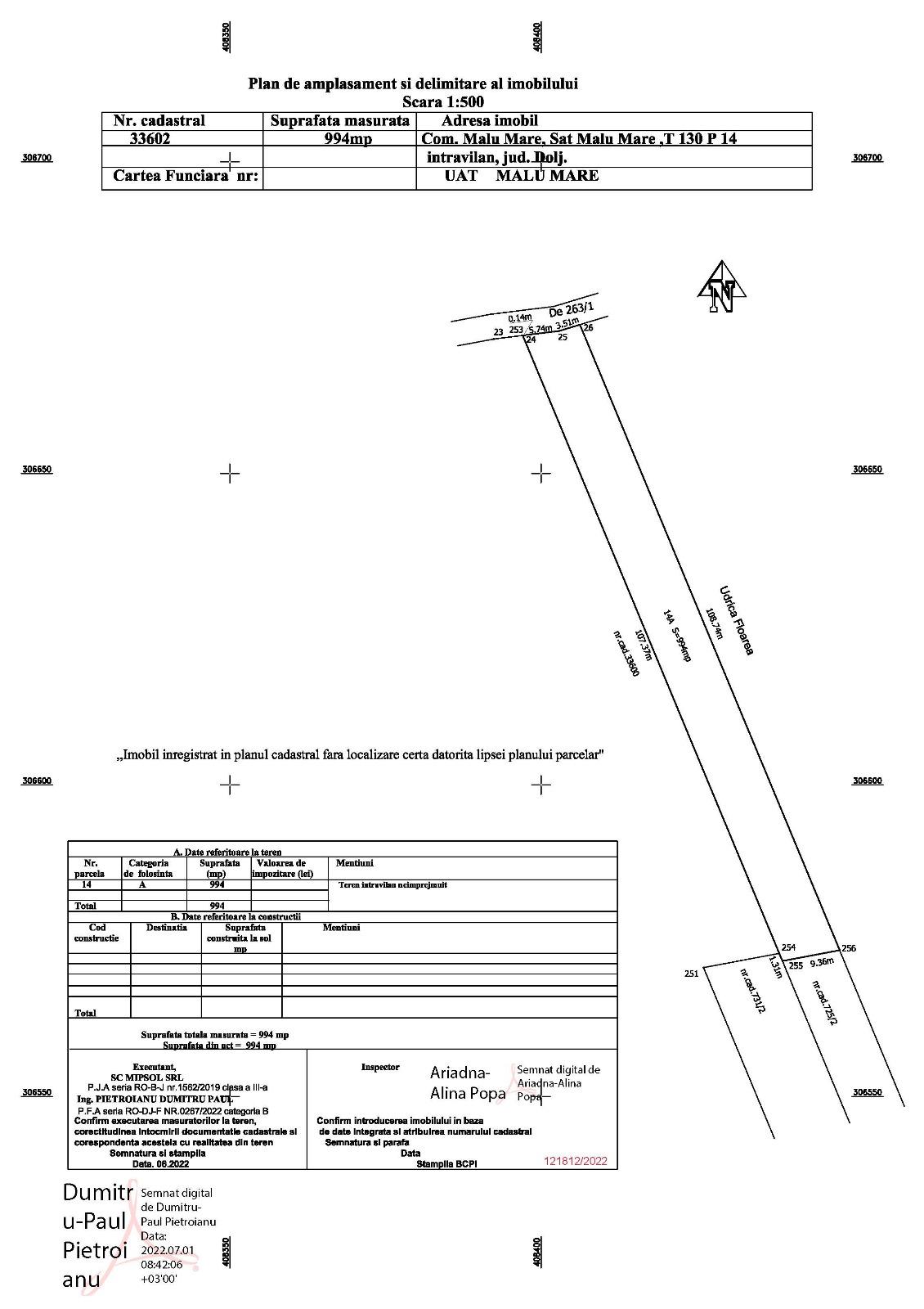 Vand teren Malu Mare 1305 mp, deschidere 12.46m cu utilitati in fata terenului (apa si canalizare) si curentul la strada . Asfalt pana in coltul terenului. 40 eur/mp Langa mai detin o parcela de 994 mp,deschidere 9.25m. Oportunitate parcelare si creare cale de acces. Ambele parcele - 35eur/mp 0723.77.77.78