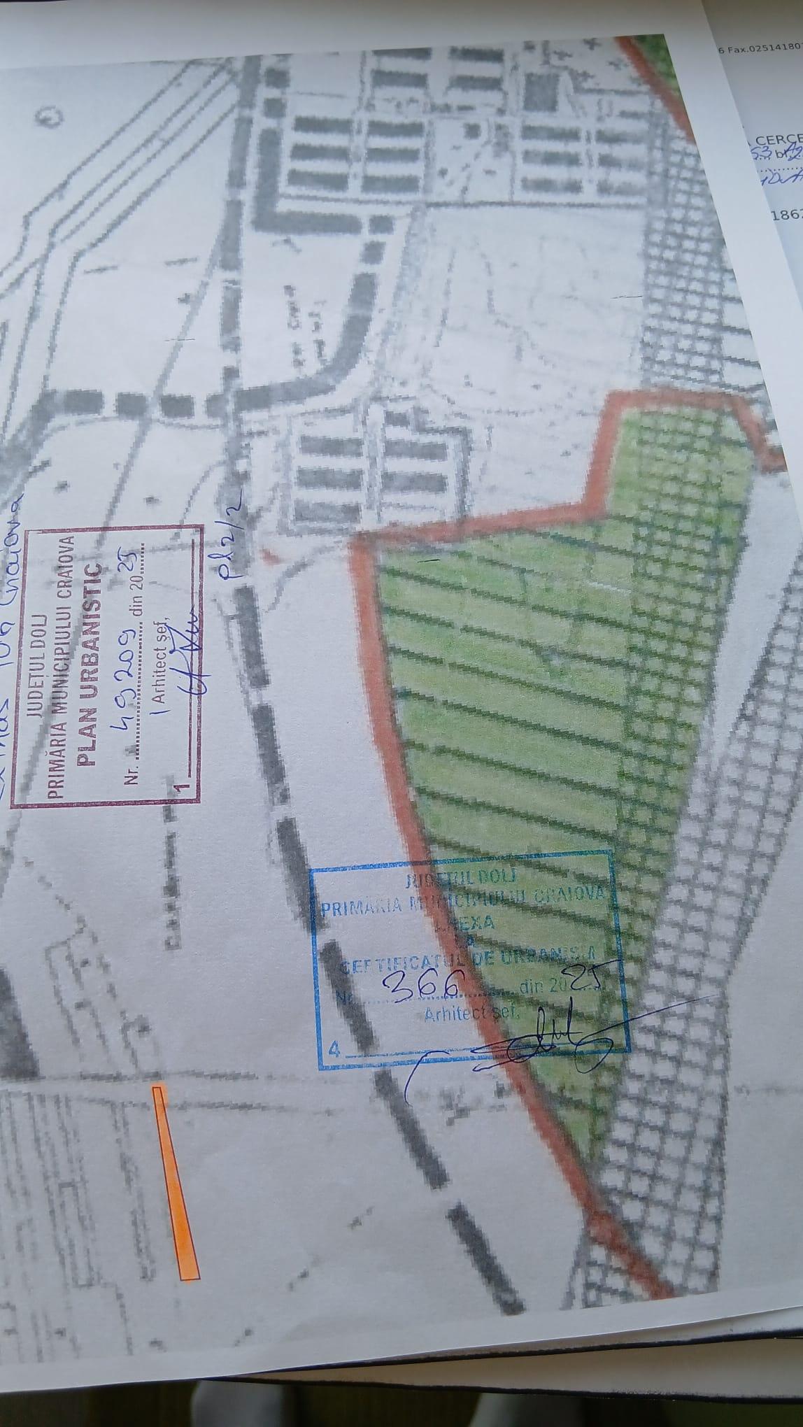 Oferim spre vanzare teren extravilan in suprafata de 1539mp, deschidere 147,18 x15,20 mp situat in Craiova, judetul Dolj. Terenul este in apropierea centurii de nord a Craiovei in spatele depozitului de materile de constructii Harmony Decor. Terenul detine cadastru si certificat de urbanism. Detalii la telefon