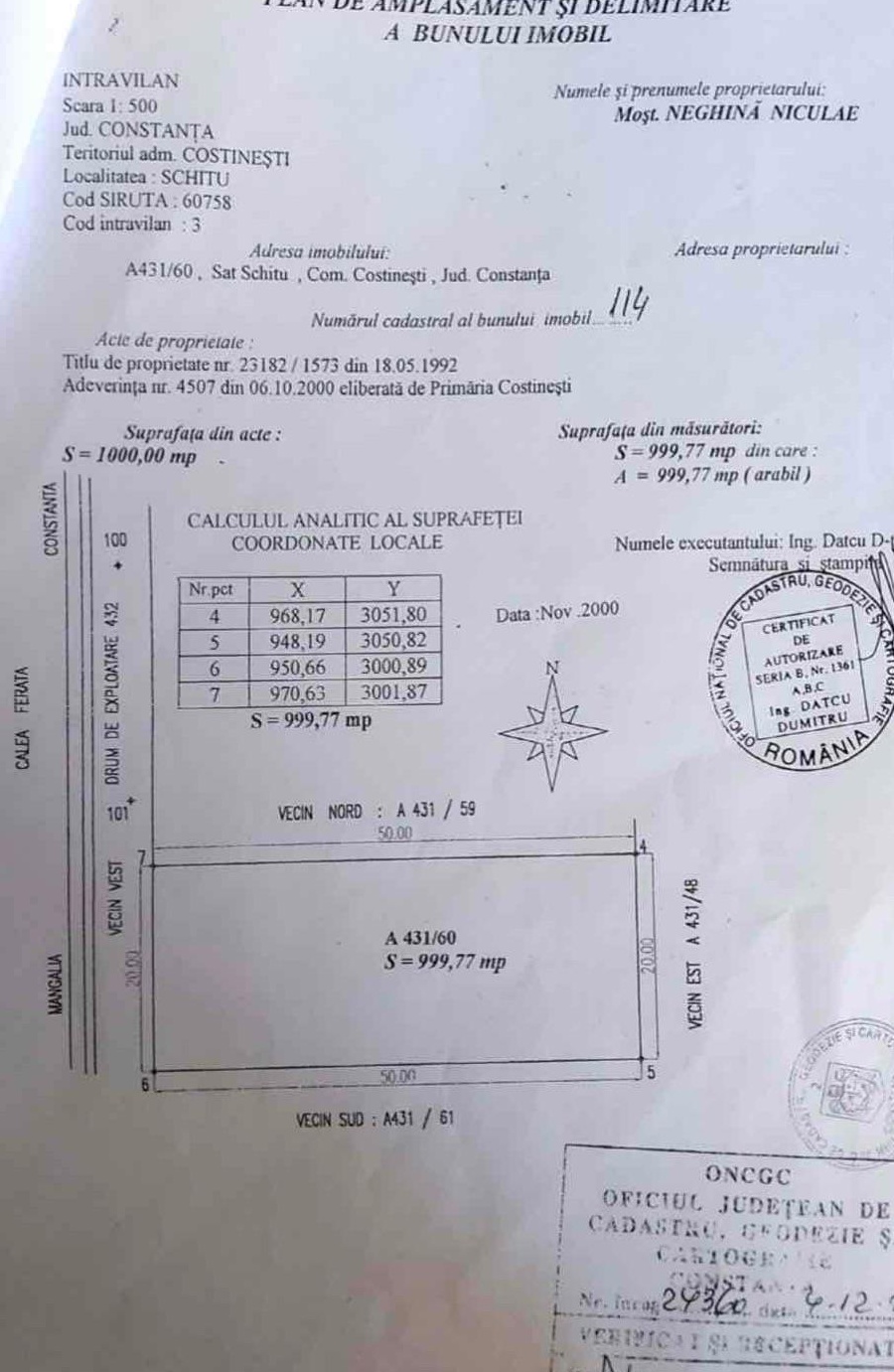 Vand teren Costinesti (Golful Francez) 975m, la sosea Strada Sf.Elena de la mare (DC 4). 20 metri deschidere. Ideal pentru pensiune sau pentru casa la mare. Utilitatile (apa,canalizare,curent) sunt la gard.