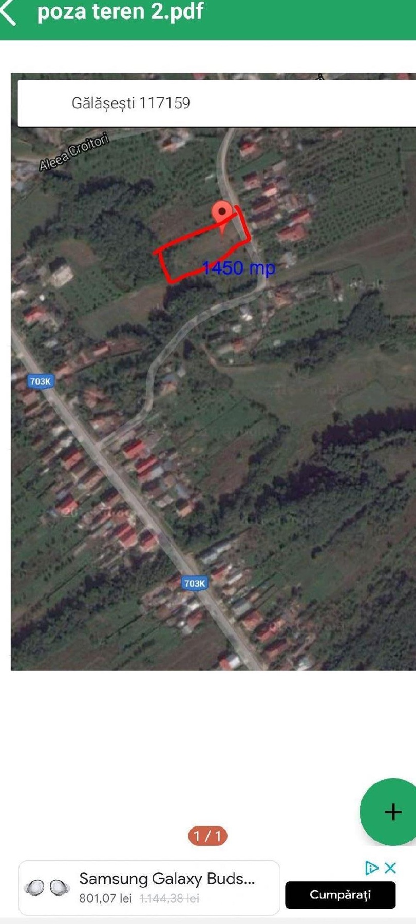 DE VÂNZARE teren intravilan în suprafață de 1450 mp, în comuna Budeasa, cu acces de la drum, deschidere de 29 metri. Utilitățile (apă, curent, canalizare, gaze) la poartă. Prețul este de 15 euro pe mp