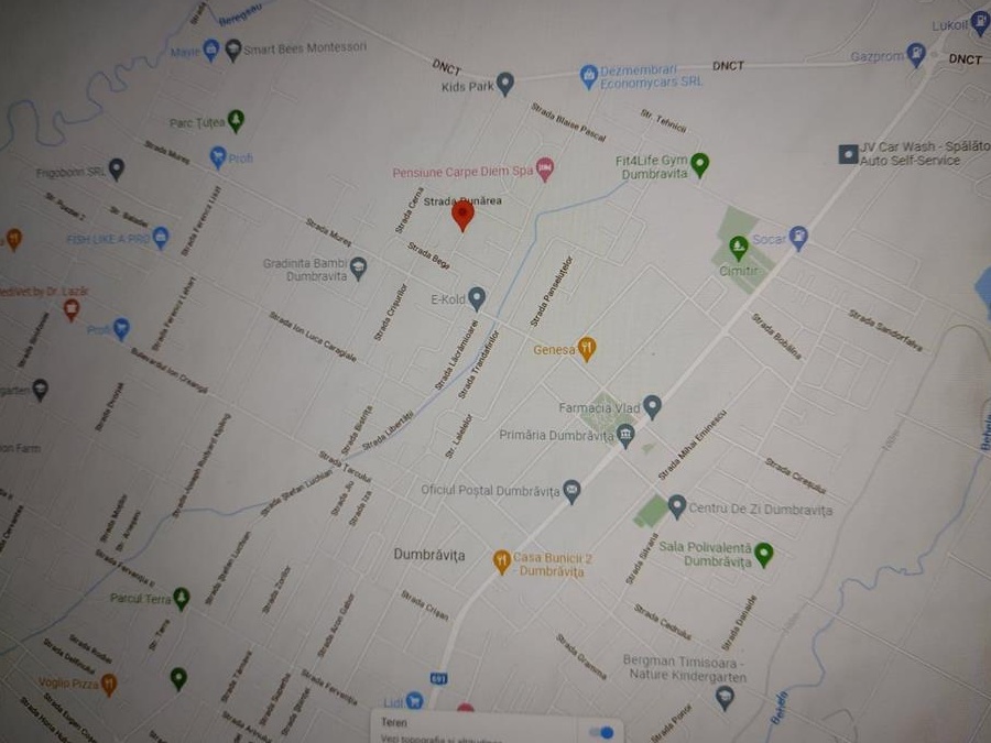 Vând teren construcție casă individuală sau duplex situat, în Dumbrăvița str. Dunărea. Terenul dispune de toate utilitățile (apă, canal, gaz, curent, internet, iluminat stradal). Cotă nivel înalt. Front 19,6 m. Suprafața 988 mp. Drum acces asfaltat. Terenul este îngrădit. Terenul este îngrijit, pe el sunt plantați pomi fructiferi. Preț 165.000 euro