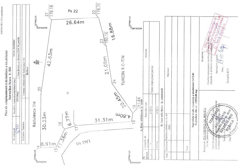 Vand teren intravilan, in suprafata de 2473 mp, in comuna Balteni, strada Invatator Stancu Predescu, nr.49, judetul Olt. Deschidere la strada 63 m. Curent si apa la poarta. Zona centrala (200 m fata de Primarie). Posibilitate de parcelare ori schimb cu garsoniera confort 1 în Slatina Olt.