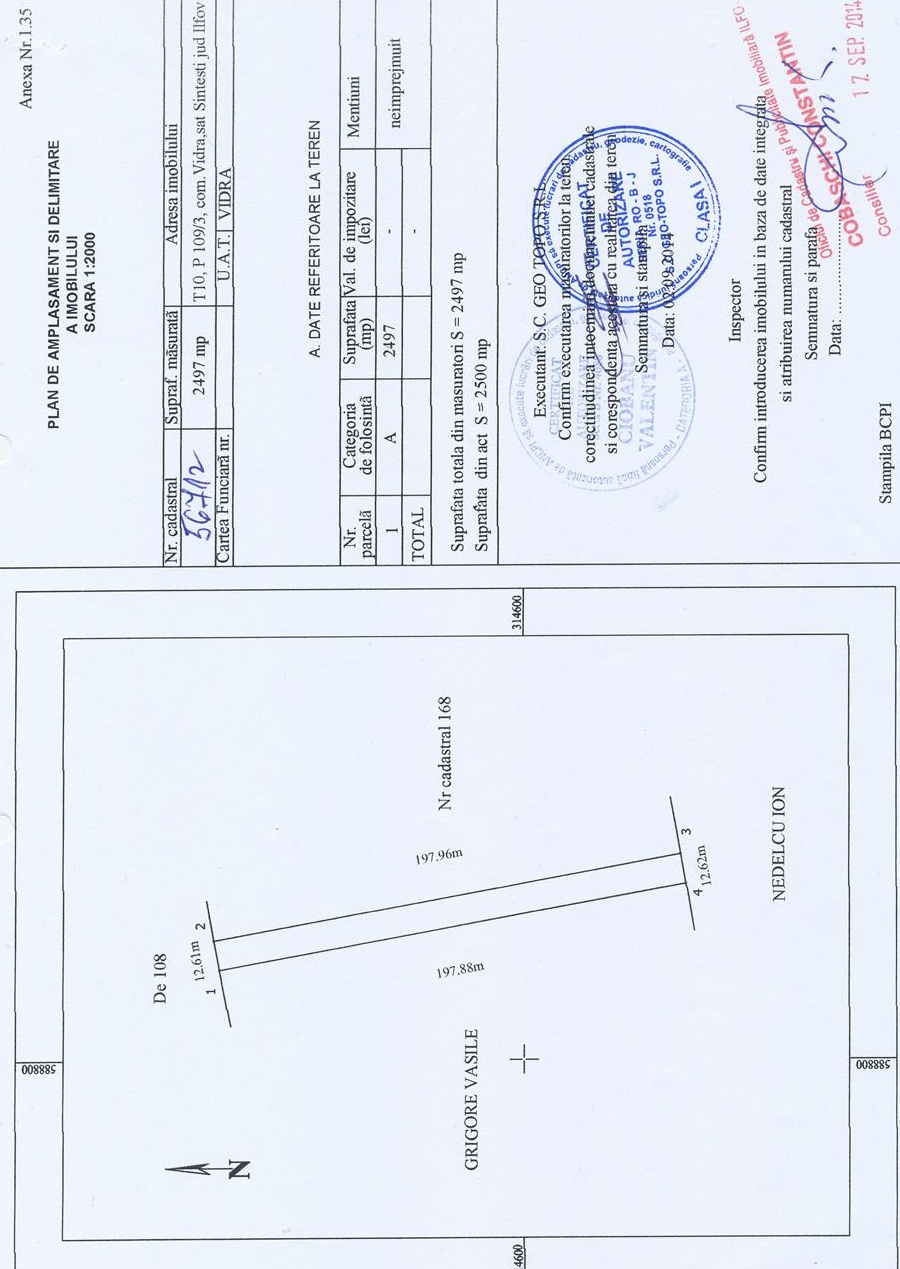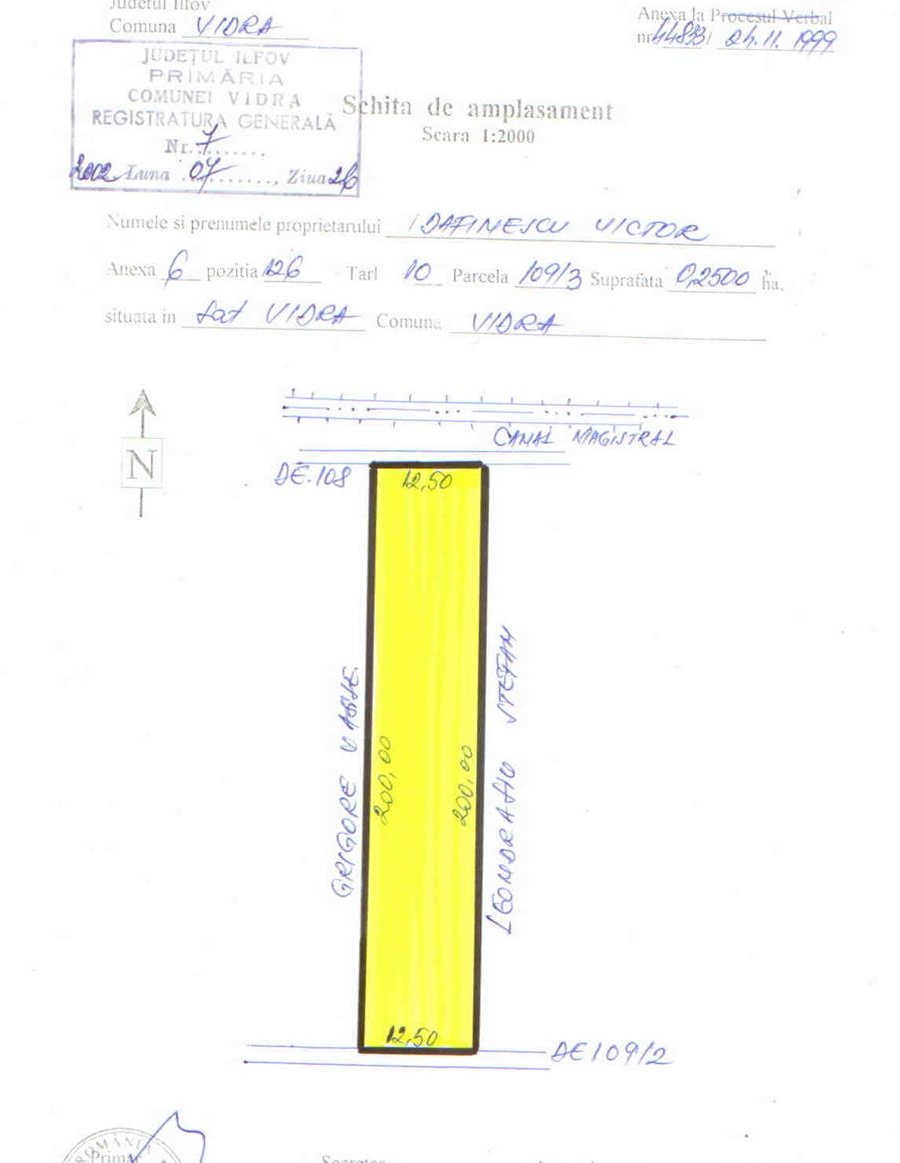 PARTICULAR, vand teren de 2.500 mp in comuna VIDRA - jud. ILFOV